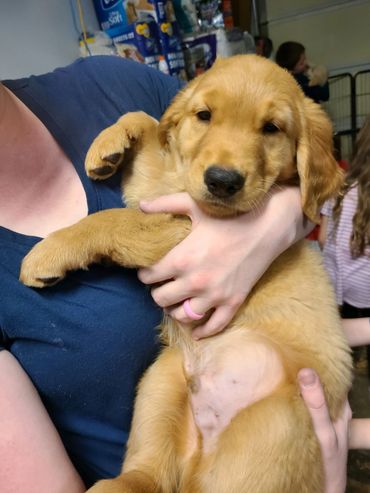 Our Golden Retriever puppies are born and raised under constant supervision and care, as part of our family. We are a responsible, family breeder that does DNA and health testing on our breeding dogs. We strive to provide you with a happy, healthy, well socialized, loving puppy to join your family.